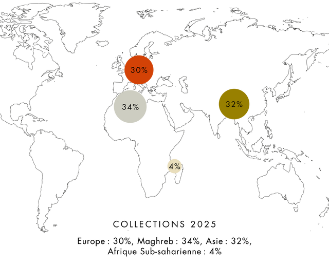 As part of our vision of slow fashion, we are focusing not only on the sustainability of our products, but also on the sustainability of our relationships by building loyal relationships with our partners. 43% of them have been with us for more than five years. These suppliers know our products, our requirements and work with us to improve our models. That's why we don't stop at their geographical location. However, we do our utmost to develop new local partnerships in Europe and North Africa.