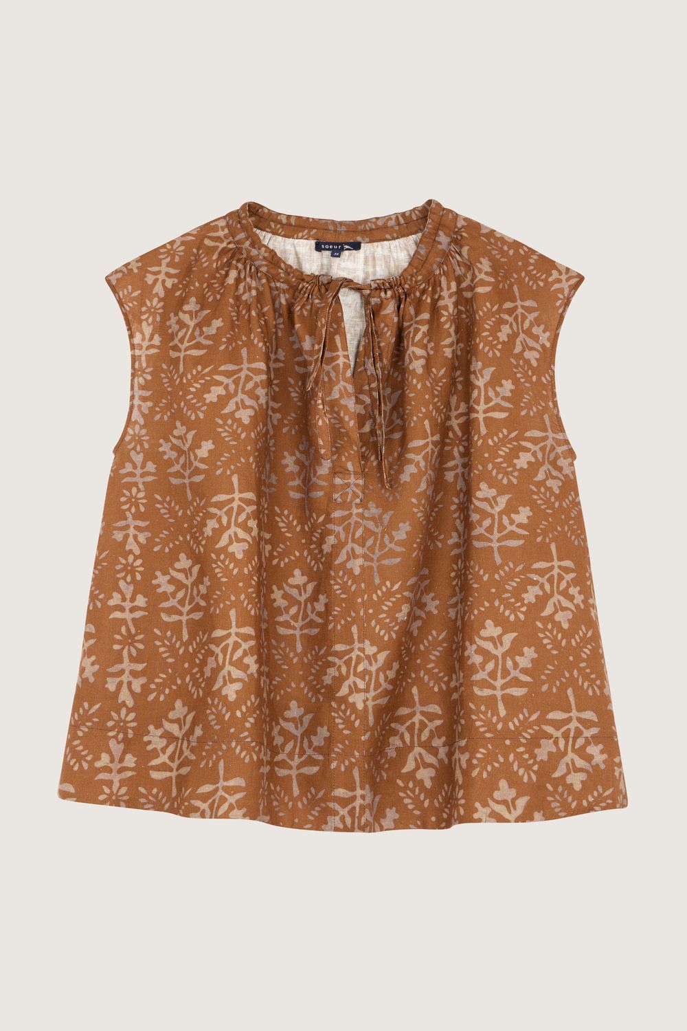 tanger shirt Linen smock with brown/purple print