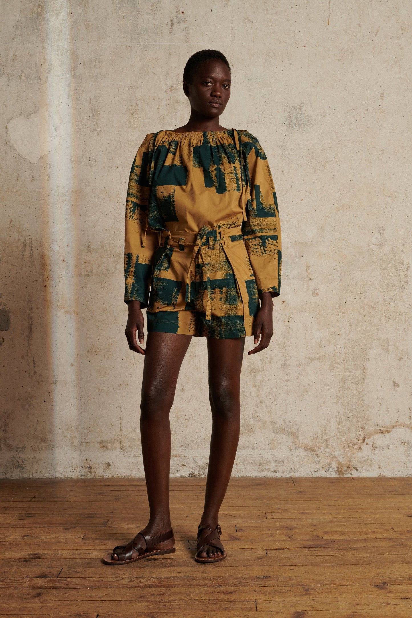 uki shirt Blue and beige printed cotton poplin blouse
