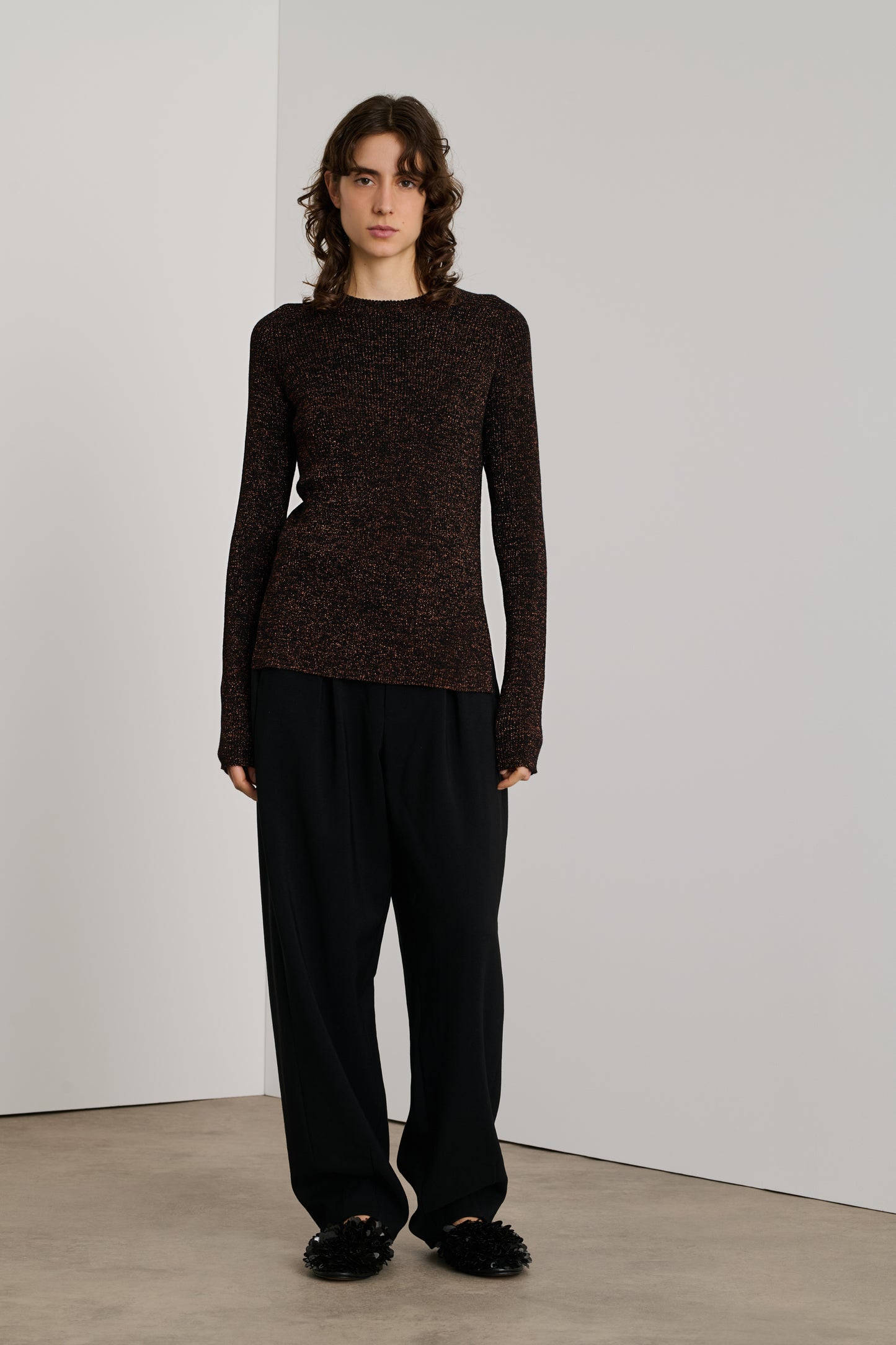 Lurex ribbed long sleeve sweater